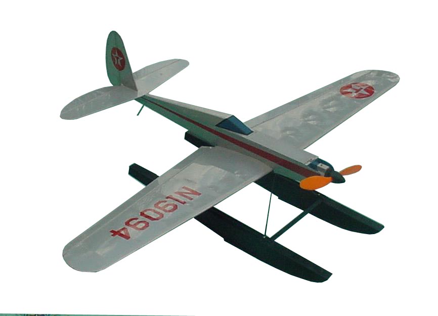 Designed by Harry Stewart, the Race-E is an aerobatic Park flyer with a wing loading in the 6 oz. per sq. ft. range with a 40 1/2" wingspan and 242 sq.in. of area. The tapered wing and classic tail shape give the Race-E a great look in the air. The assembly instructions address brushed power options ( no longer avbailable)and brushless for pure vertical performance. We recommend the HiMaxx 2808 brushless (M-110) and 18 amp Thunderbird speed control (C-M-110). The Race-E is not a 3D airplane, but is an excellent sport aerobatic design, and I have to say is the best flying, most fun model in our personal fleet. With the Flash Floats (B-309) the Race-E taks on the appearance of a Snyder Cup Racer (F-314).