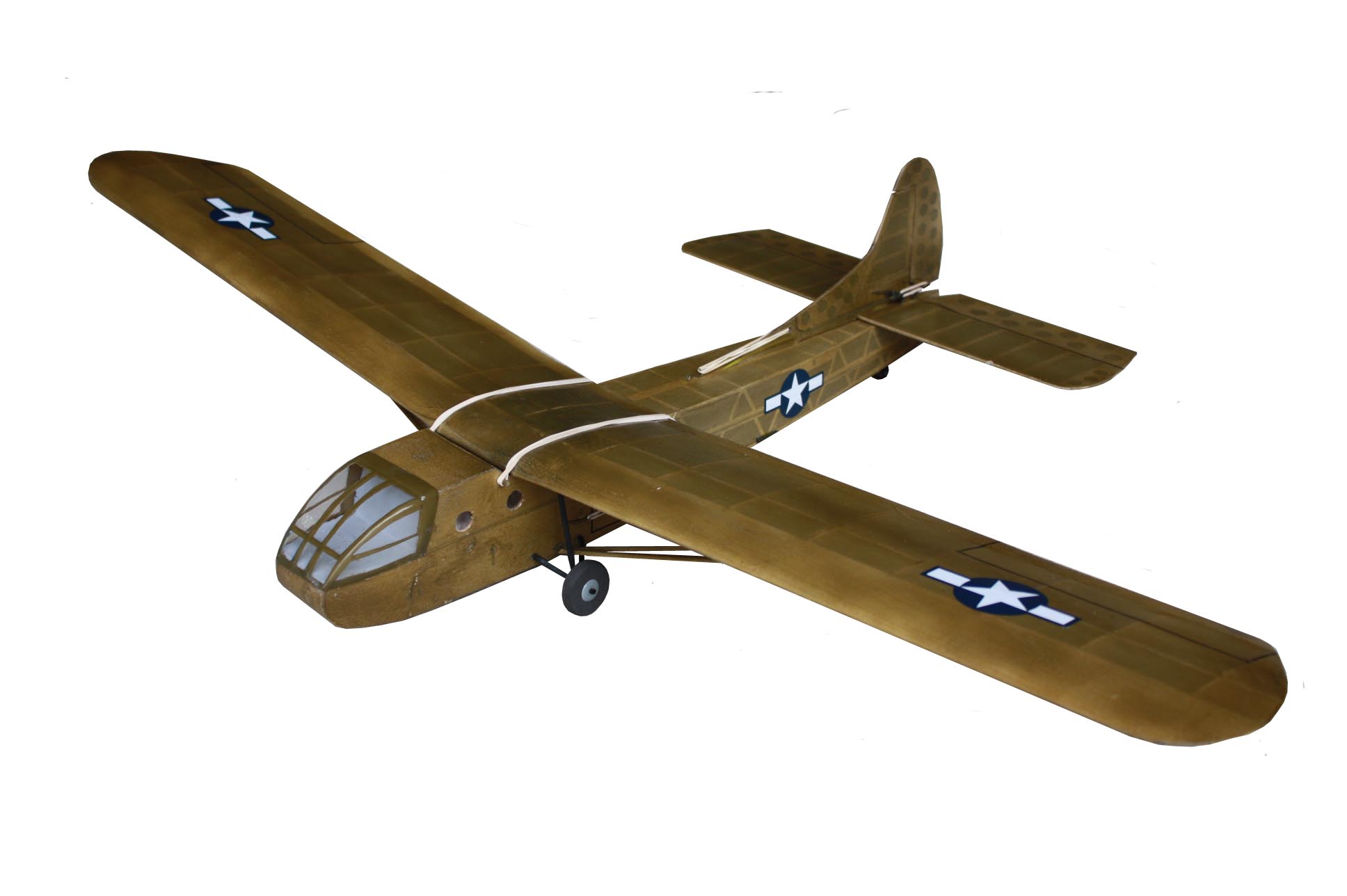 TheWaco CG-4Awas the most widely used American troop/cargo<a href="https://en.wikipedia.org/wiki/Military_glider"> glider</a>of<a href="https://en.wikipedia.org/wiki/World_War_II">World War II</a>. Designed by the<a href="https://en.wikipedia.org/wiki/Waco_Aircraft_Company">Weaver Aircraft Company</a>,(WACO) flight testing began in May 1942, and eventually more than 13,900 CG-4As were delivered. The CG-4A was constructed of fabric-covered wood and metal and was crewed by a pilot and co-pilot. It had two fixed main wheels and a tail wheel for service and training. For battle a drop off dolly and wooden skids were used for rough field landing. <a href="https://en.wikipedia.org/wiki/Douglas_C-47_Skytrain">C-47s</a>were usually used as tow aircraft. The tow line was11â„16-inch-diameter<a href="https://en.wikipedia.org/wiki/Nylon">nylon</a>, 350feet long.